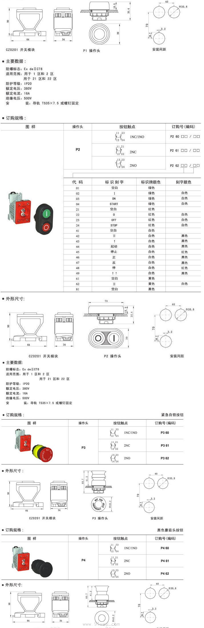 CZ0201下列板前型防爆按鈕元件