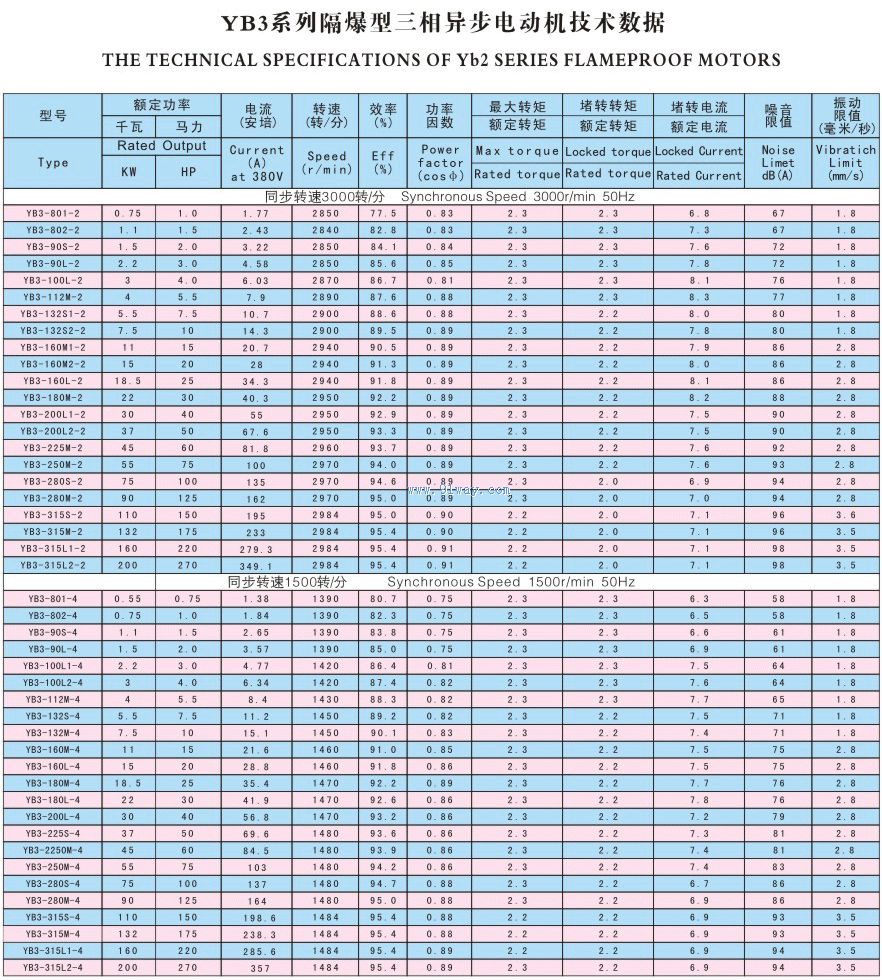 YB3系列隔爆型電動機具有體積小、重量輕、外形美觀、運行安全可靠、壽命長、性能優良,效率高,節能效果顯著、 安裝使用維修方便等特點,其安裝尺寸完全同YB2,是YB2的替代產品,廣泛使用于煤炭、石油、化工行業。