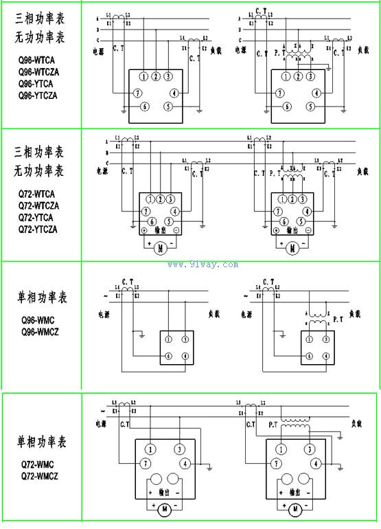 Q144-YTCZA,Q144-YTCA三相無功功率表接線圖