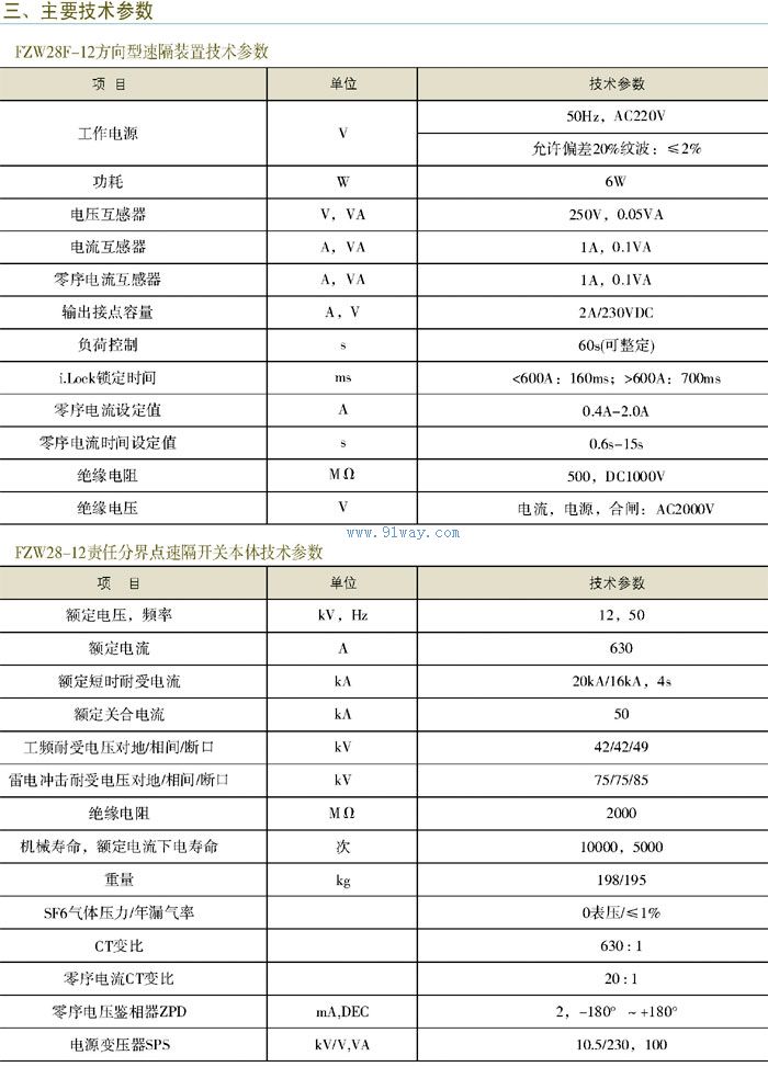 FZW28F-12系列戶外分界真空負荷開關技術參數