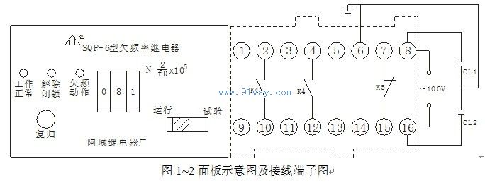 繼電器采用JK-2殼體,外形尺寸、背后端子及安裝開孔圖見附錄。面板示意圖見圖1。接線端子圖見圖2。