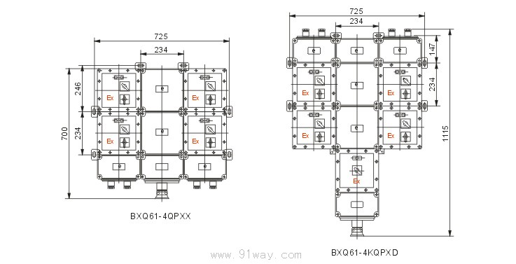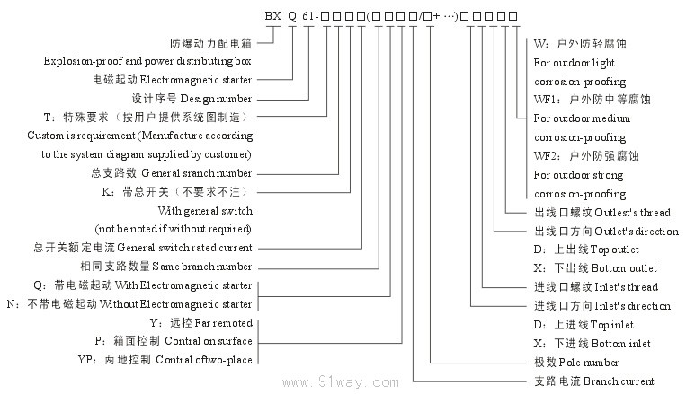 | 產(chǎn)品名稱: | BXQ61防爆動力配電箱(電磁起動)(ⅡB) | |||||