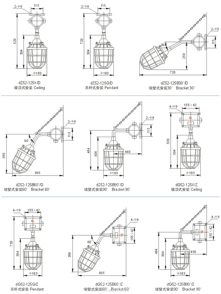 | 產品名稱: | d□52隔爆型防爆燈(ⅡB) | |||||