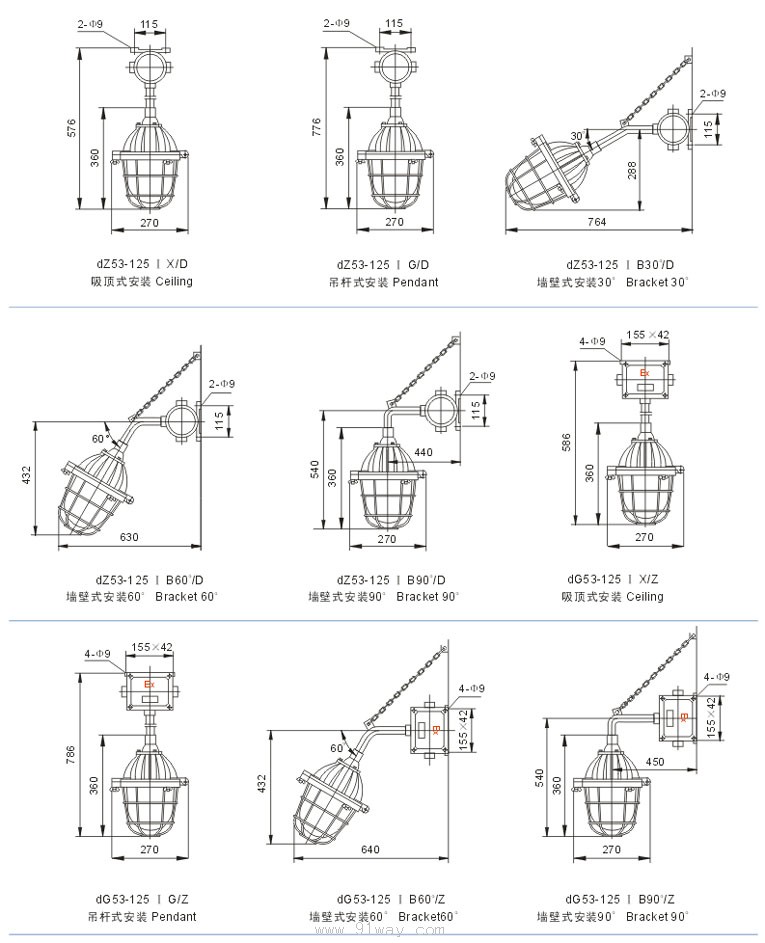 4. 可配裝白熾燈、自鎮汞燈、外鎮汞燈、高壓鈉燈、中顯色鈉燈、高顯色鈉燈、金屬鹵燈;