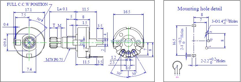 RV17-NB-K4旋轉(zhuǎn)式電位器