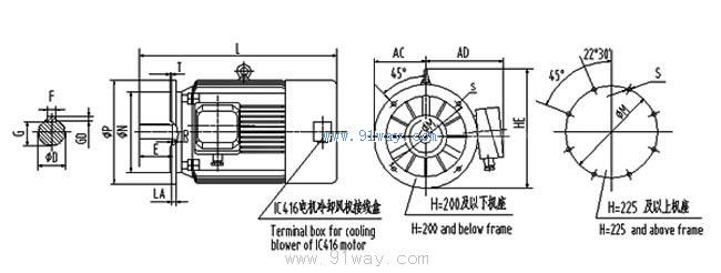 從軸伸端視之,電機接線盒位于機座右側(355及以上機座號為機座上方)。用戶如有特殊要求,請訂貨時說明,另行商議。