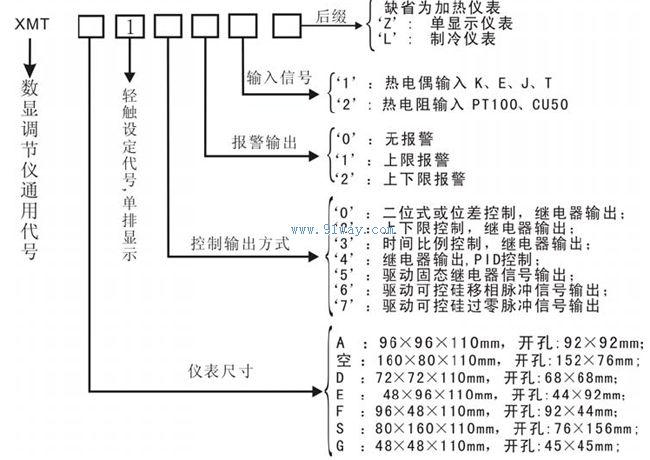 XMT1000數顯溫度控制器選型說明