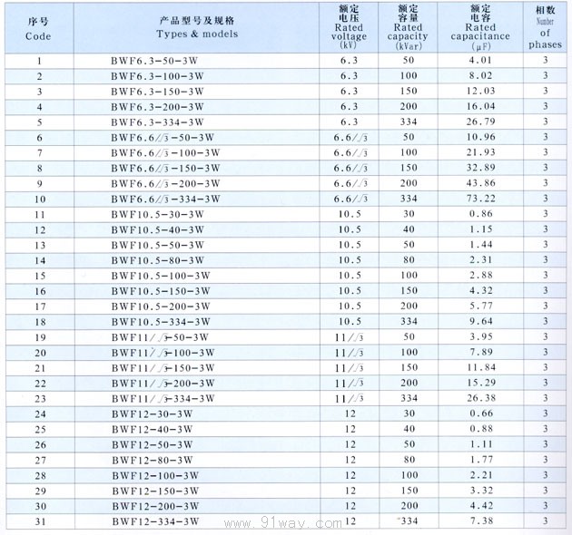 BWF系列高壓電力電容器主要技術(shù)參數(shù)