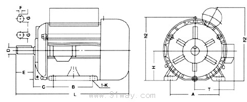 機(jī)座有底腳,端蓋上無凸緣,臥式安裝。