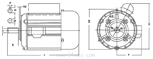 機(jī)座無底腳,端蓋上有凸緣(型號(hào)后加B14),立式安裝。