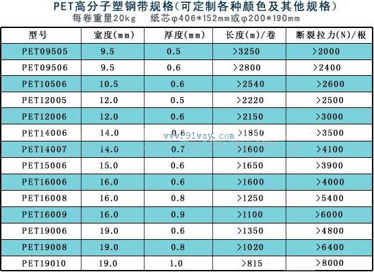 | 產品名稱: | DBD-PET塑鋼打包帶 | |||||