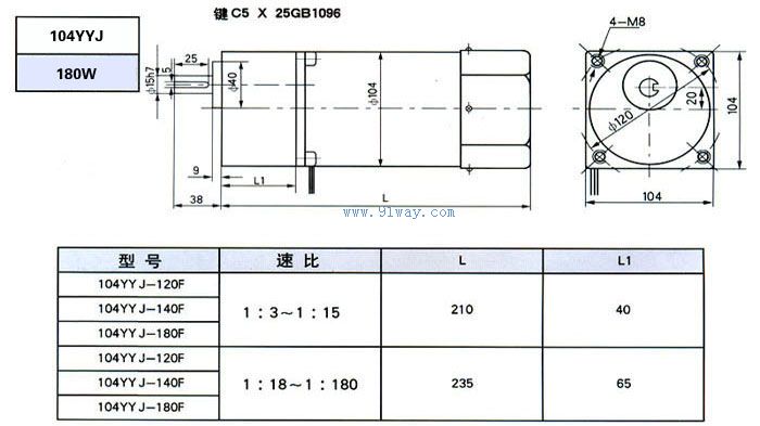 | 產品名稱: | 104YS180W齒輪減速單相電容運轉異步電動機 | |||||