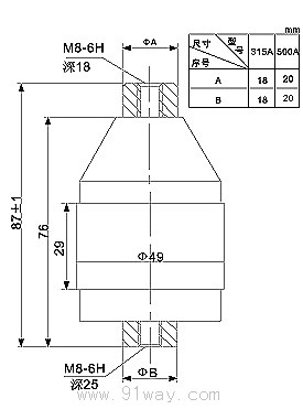 ZKTJ-315、500/1140型陶瓷真空開關管外形尺寸及安裝尺寸