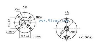 圖1固定式ZN73-12外形尺寸圖:額定電流>1600A,括號內(nèi)尺寸為額定電流≤1600A