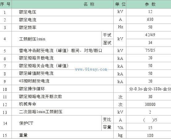 MZZ10-12/T630-20戶外柱上高壓真空斷路器主要技術參數(shù)