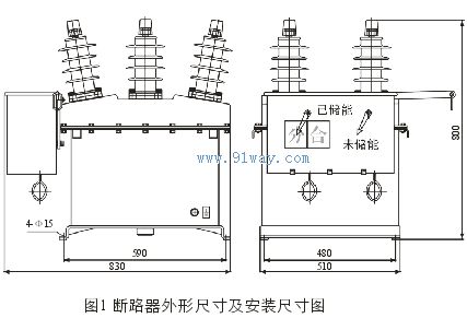 MZZ10-12/T630-20戶外柱上高壓真空斷路器外形及安裝尺寸