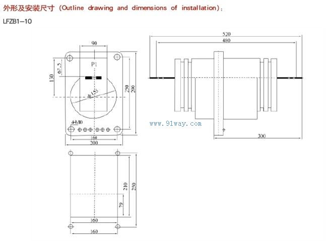 LFZB1系列高壓電流互感器為全封閉式結構,鐵芯采用優良的導磁材料,一、二次繞組及鐵芯均澆注在環氧樹脂中,具有優良的絕緣性能和防潮能力,并易表面維護。一次出線P1、P2分別在澆注體的兩側,二次繞組出線端在澆注體的中間,第一組為計量繞組(0.2S級、0.2級),標志為1S1、1S2:第二組為監控繞組(0.5級),標志為2S1、2S2;第三組為保護級繞組(10P級),標志為3S1、3S2。如果客戶需要,可任意改變準確級組合,互感器為減極性,中間4只M10的銅嵌件為互感器的安裝孔。