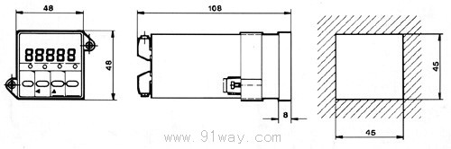 721型雙預置計數器輸入的計數脈沖,通過一個乘法器可接0.001~9.999的比率換算后顯示。只顯示整數,余數保留在內部,計入的數值(計數脈沖*比率系數)不超過最大計數的頻率。在比率顯示的同時,輸出一個相同的信號源。