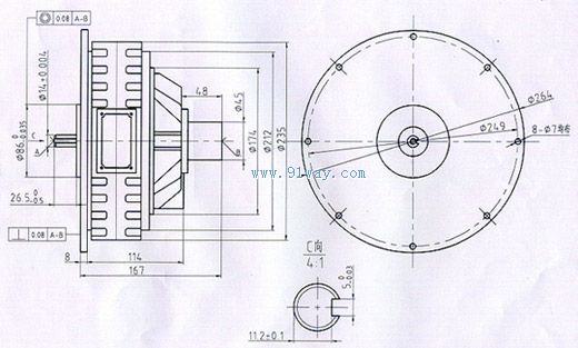J220SXP型線繞盤式永磁直流伺服電機的型式 J220SXP型線繞盤式永磁直流伺服電機的外形及安裝尺寸