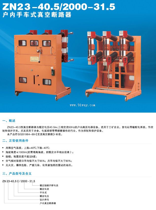 ZN23-40.5/2000-31.5型戶內高壓真空斷路器