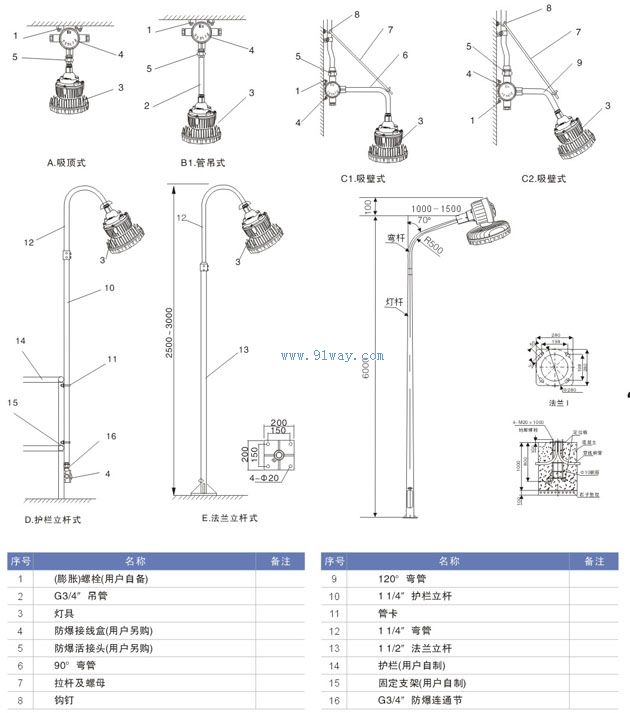 1、按照產(chǎn)品型號(hào)說(shuō)明逐條選擇并注明防爆標(biāo)志;例如:需要40W、220V,吊桿式,配接線(xiàn)盒,氣體防爆,則產(chǎn)品選型為:GTBG340-40gH ExdIICT6 Gb;