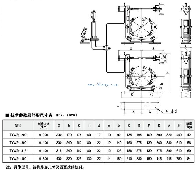 | 產品名稱: | TYWZ2系列腳踏液壓鼓式制動器 | |||||