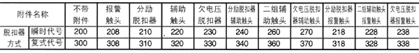 3)斷路器的附件名稱、規格、組合代號;采用欠電壓脫扣器和分勵脫扣器時,應注明工作電壓(或控制電源電壓)的電壓值;
