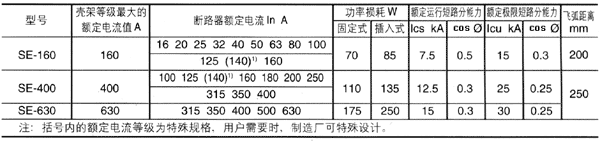 SE系列塑料外殼式斷路器(以下簡稱斷路器)適用于交流50Hz,額定電流從16A至電壓630A、額定絕緣電壓690V,額定工作電壓400V及以下。本系列斷路器在配電網絡中用來分配電能及作為線路及電氣設備的過載、短路和欠電壓保護之用,在正常情況下,斷路器也可作為線路的不頻繁轉換之用,400A殼架等級及以下的斷路器亦可作為保護電動機和電動機的不頻繁起動之用。