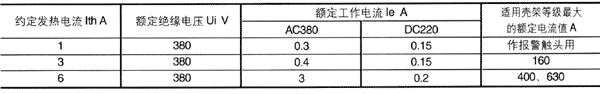 3、輔助觸頭和報警觸頭的主要技術參數