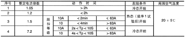 3.熱繼電器的動作特性見表3和表4(+20℃)