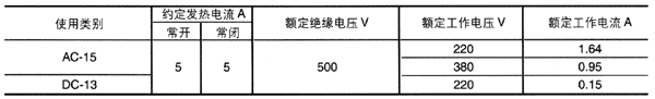 表2輔助觸頭基本參數