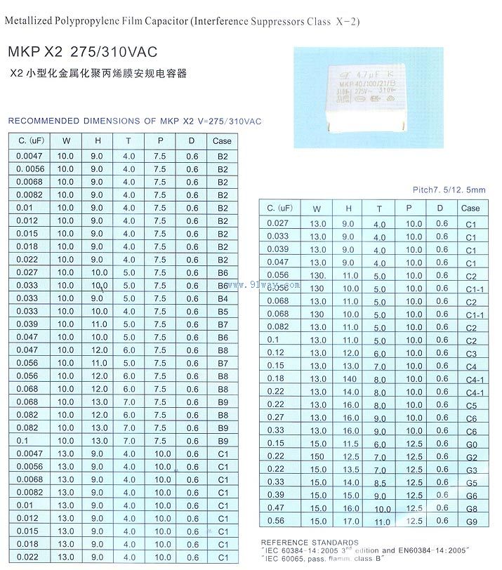X2-275/310VAC金屬化安規電容器