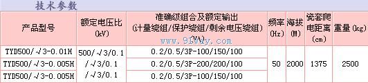 TYD500系列高壓電壓互感器技術(shù)參數(shù)