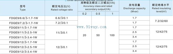 FDGE9-1W型全封閉戶外干式放電線圈技術參數見下表: