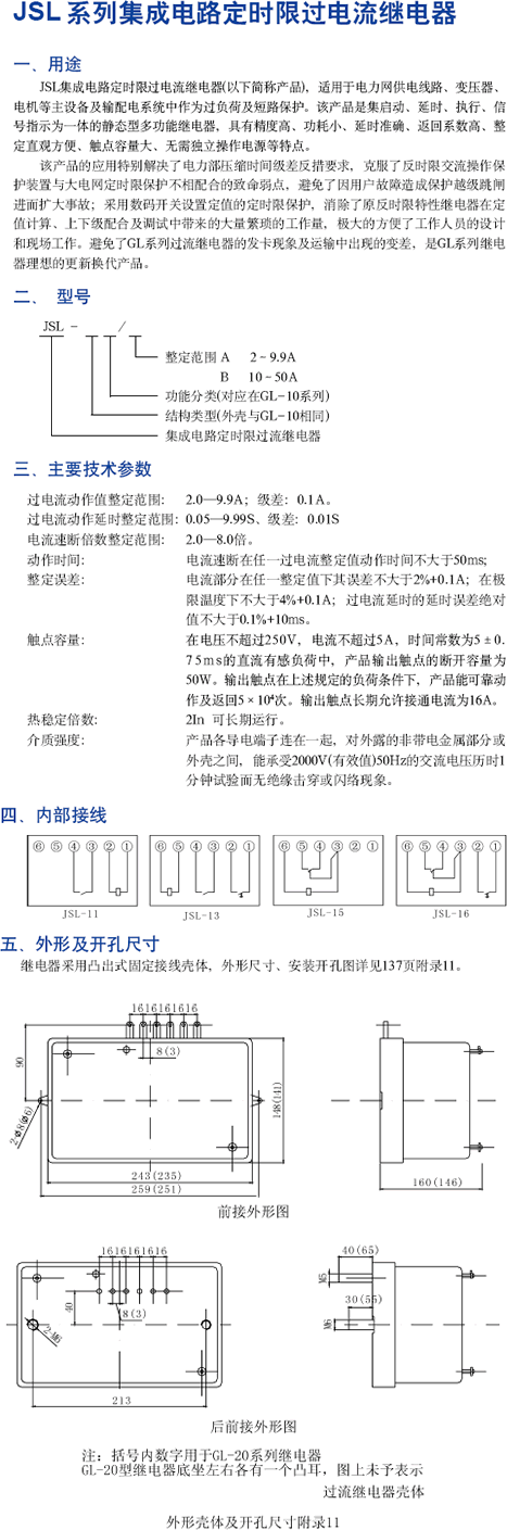 JSL系列集成電路定時限過電流繼電器