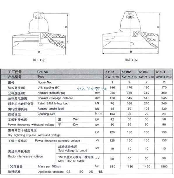 X1191-1194系列三傘型耐污懸式瓷絕緣子