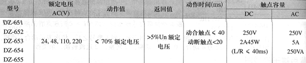 DZ-650系列中間繼電器主要技術數(shù)據(jù)見表