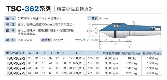 TSC-362中負荷精密小徑回轉(zhuǎn)頂針