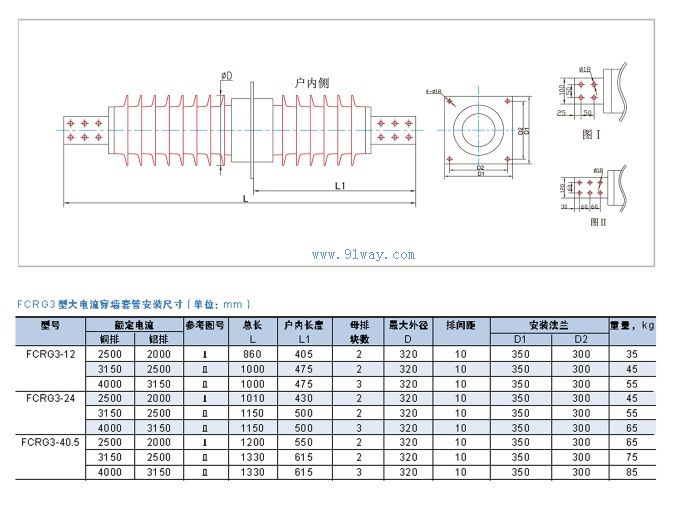 FCRG3大電流干式電容型穿墻套管主要性能指標(biāo)