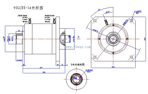 90LCXK型稀土永磁直流力矩測速機組外形及安裝尺寸: