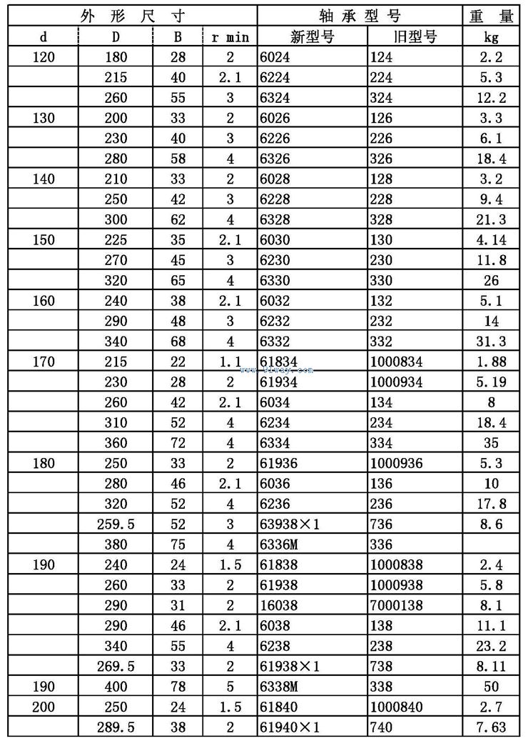 D180-280深溝球軸承