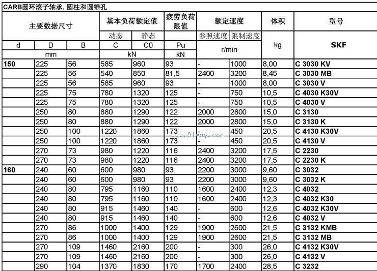 CARB圓環滾子軸承尺寸范圍: 內徑尺寸范圍:150mm~1250mm 外徑尺寸范圍:210mm~1800mm 寬度尺寸范圍:50mm~470mm