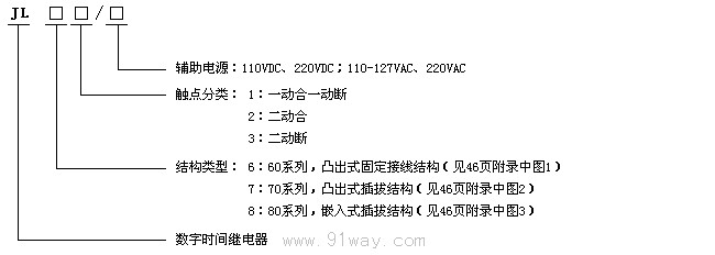 JL-60,70,80靜態電流繼電器型號分類及含義