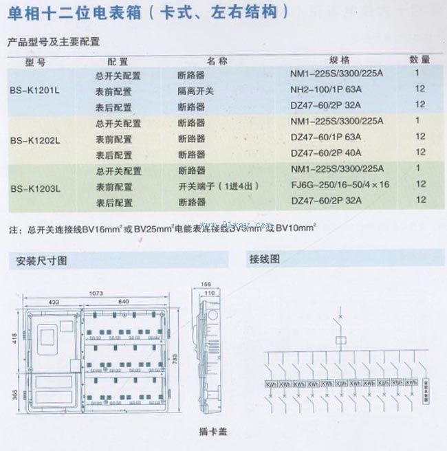 BS-K1200L系列12表位48回路帶主控塑料單相卡表箱