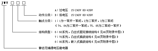 JWY-60,70,80系列無輔助電源靜態電壓繼電器型號說明
