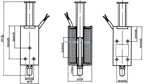 FZ-2分合閘電磁鐵為VS-1高壓斷路器中控制分合閘的動力元件 性能 工作電壓:110 22VDC 行程:≤34.5mm FZ-2分合閘電磁鐵外形及安裝尺寸