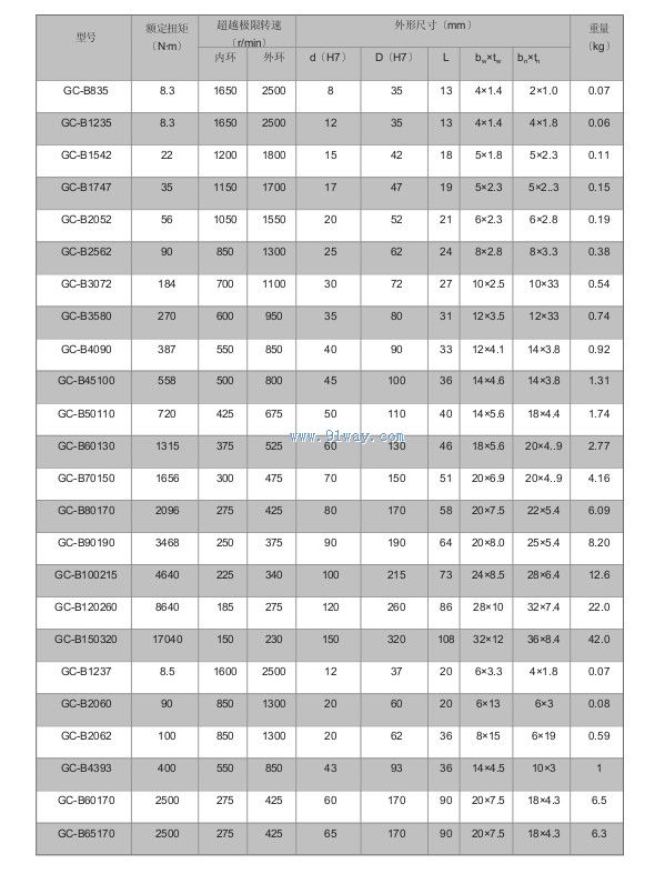 GC-B型無軸承支撐滾柱式單向離合器