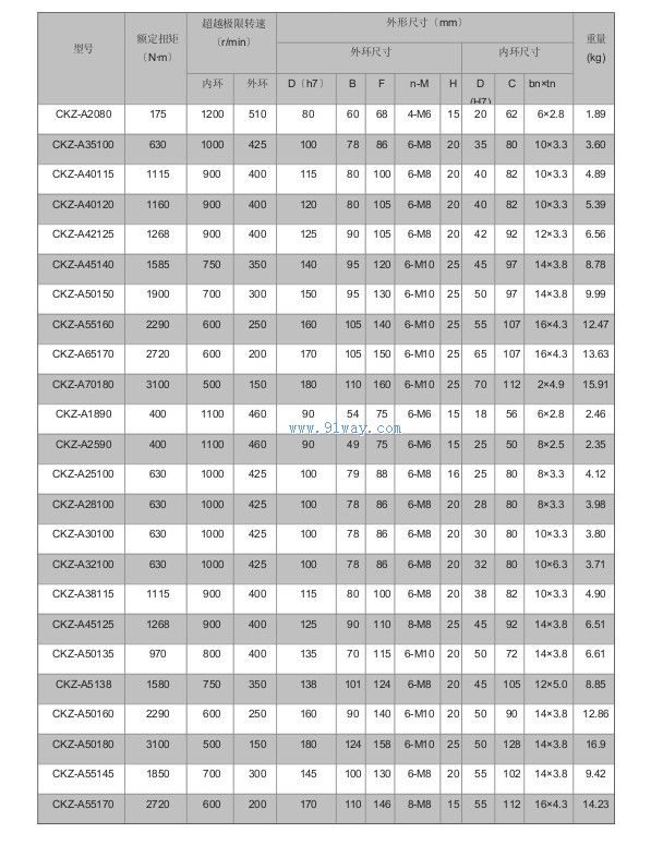 CKZ-A楔塊式單向離合器