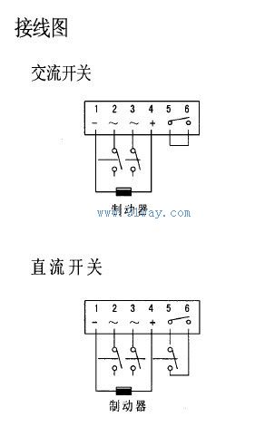 直流開關是5,6接入交流接觸器常開點,這種接線方式,可以有效地縮短制動器響應時間,交流開關制動器響應時間大約是直流開關的6至10倍。
