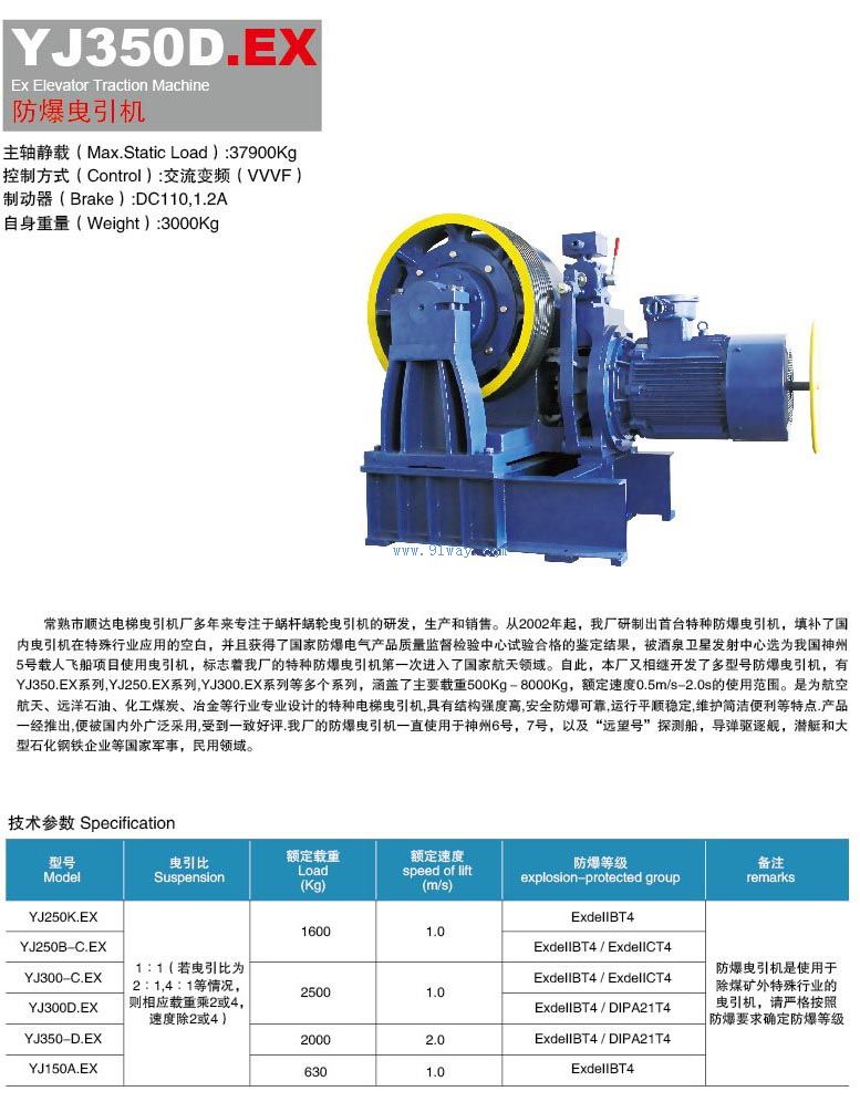 YJ350D.EX(630-2500kg,1.0-2.0m/s)防爆曳引機